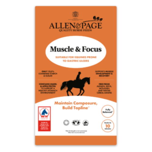 Muscle & Focus is a performance feed (10.5MJ/kg DM) suitable for horses and ponies requiring stamina, focus and support for healthy muscle development and recovery.