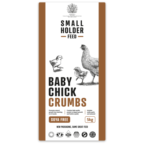 Allen & Page Baby Chick Crumbs are an ideal food for to young chicks and can be fed on a free access basis. Baby Chick starter Crumbs should be fed from as soon after hatching as possible until the chicks are 6-8 weeks old.